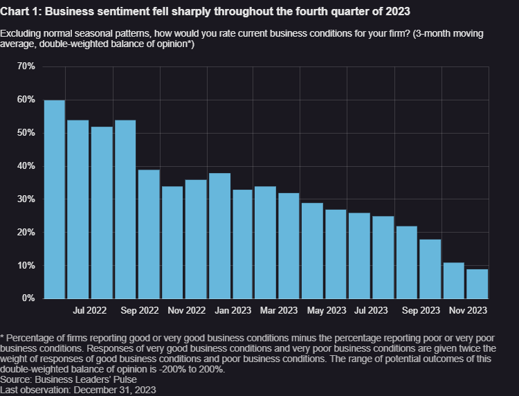 The latest BoC Business Outlook Survey indicated decreasing demand and less favorable business conditions in the fourth quarter, with high interest rates weighing on enterprises.